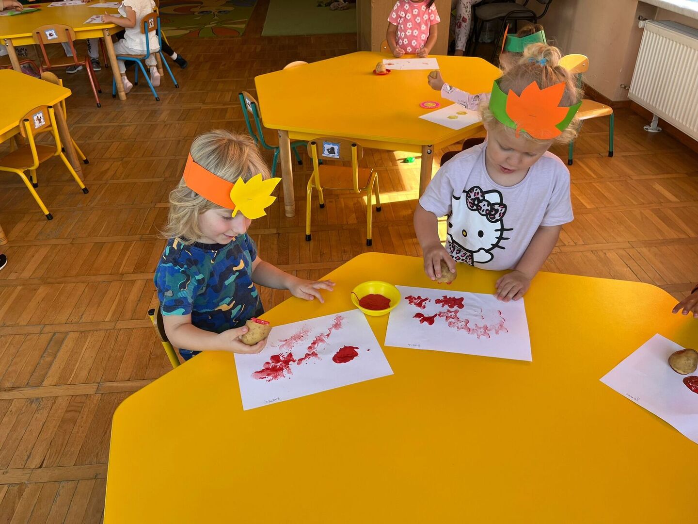 Podsumowaniem dzisiejszego dnia było wykonanie pracy plastycznej z wykorzystaniem ziemniaka. Oczywiście nie zabrakło tradycyjnych pieczonek, które dzieci zjadały z apetytem.