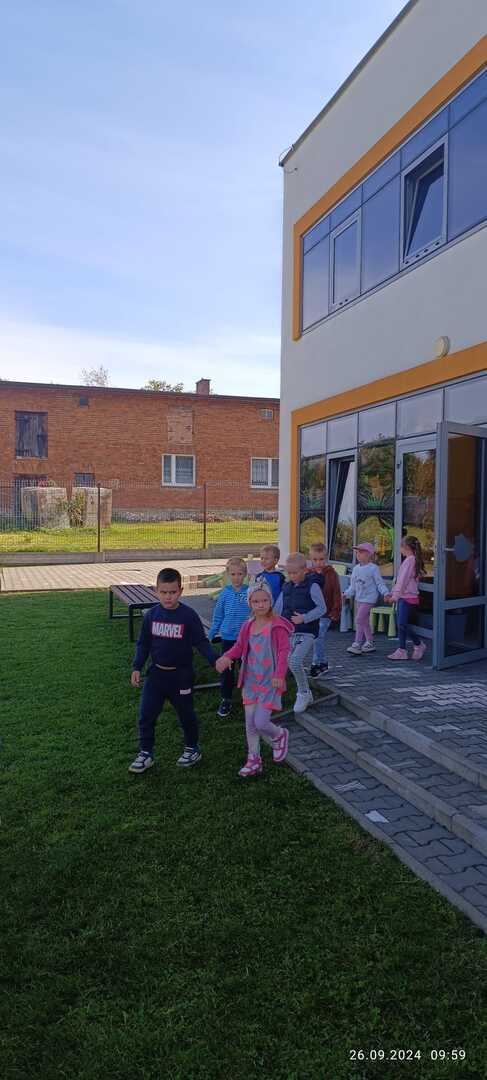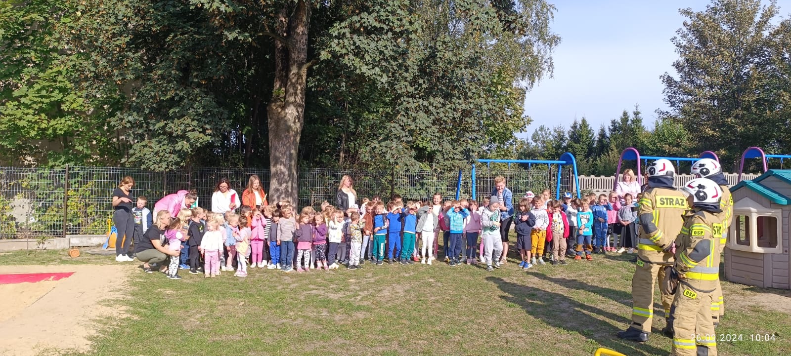 W trosce o bezpieczeństwo wszystkich dzieci w naszym przedszkolu 26 września 2024r. zostały przeprowadzone praktyczne ćwiczenia ewakuacji pracowników i dzieci z budynku przedszkola. Ewakuacja odbywała się w obecności i pod ścisłym nadzorem strażaków z Ochotniczej Straży Pożarnej w Woźnikach.