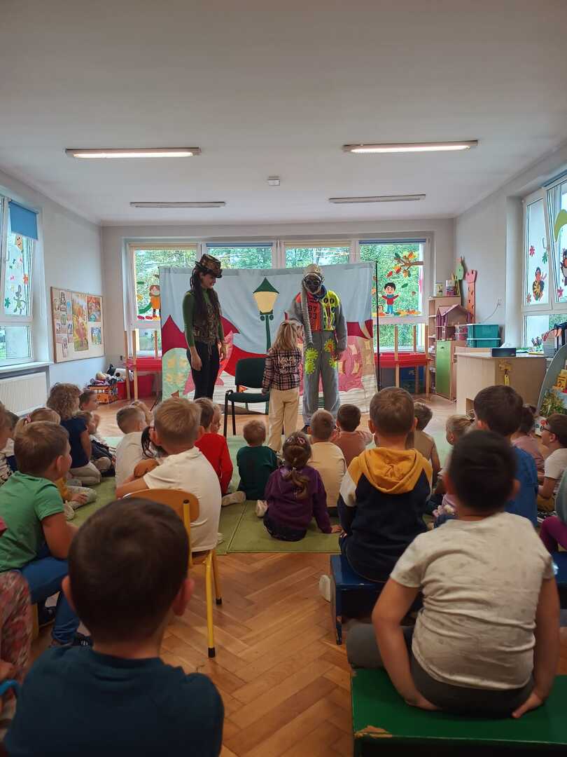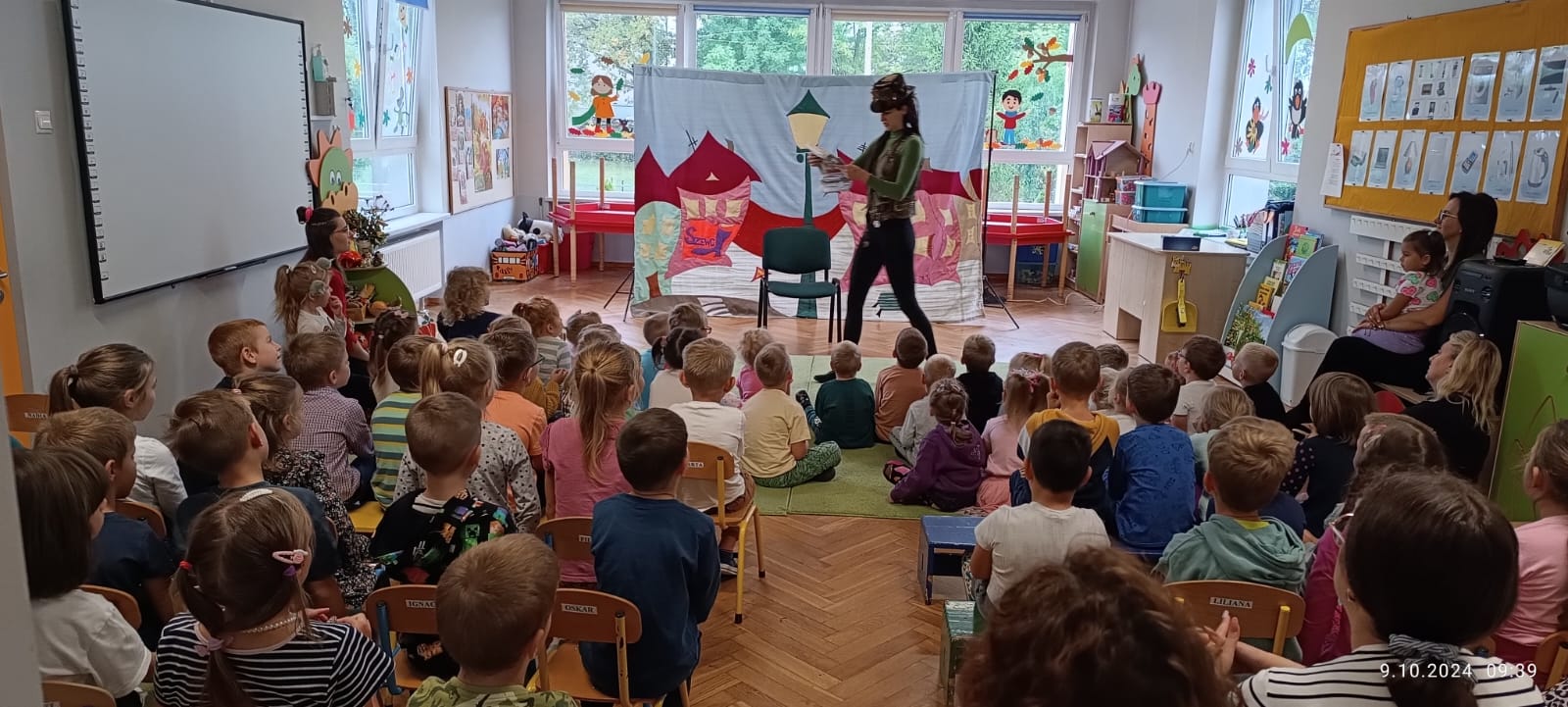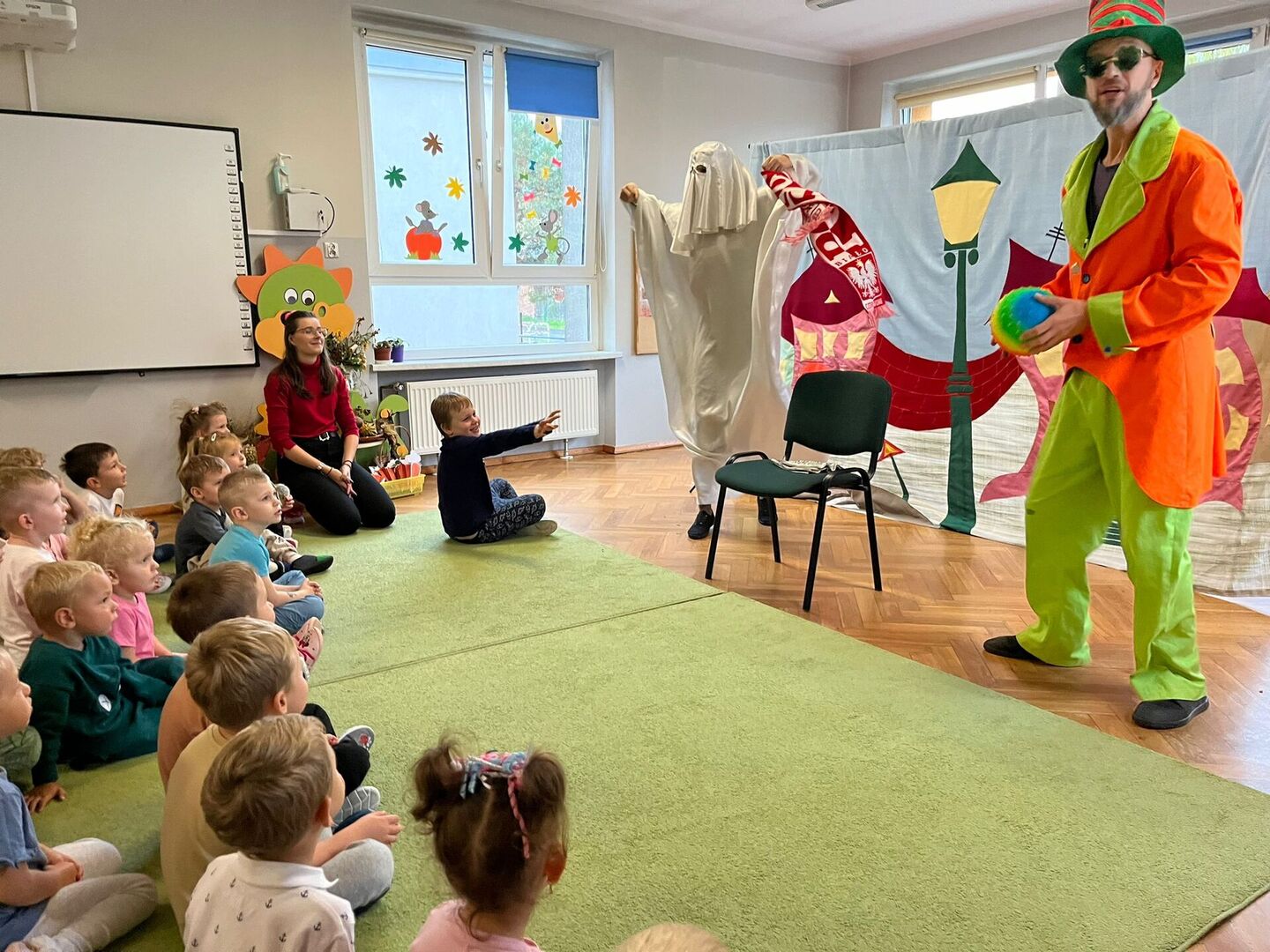 Dnia 09.10.2024r. do przedszkola zawitał teatr „Skrzat” z Krakowa ze spektaklem pt. „Siedem życzeń”. Przedszkolaki z zapartym tchem śledziły magiczną opowieść, pełną emocji i pięknych morałów.