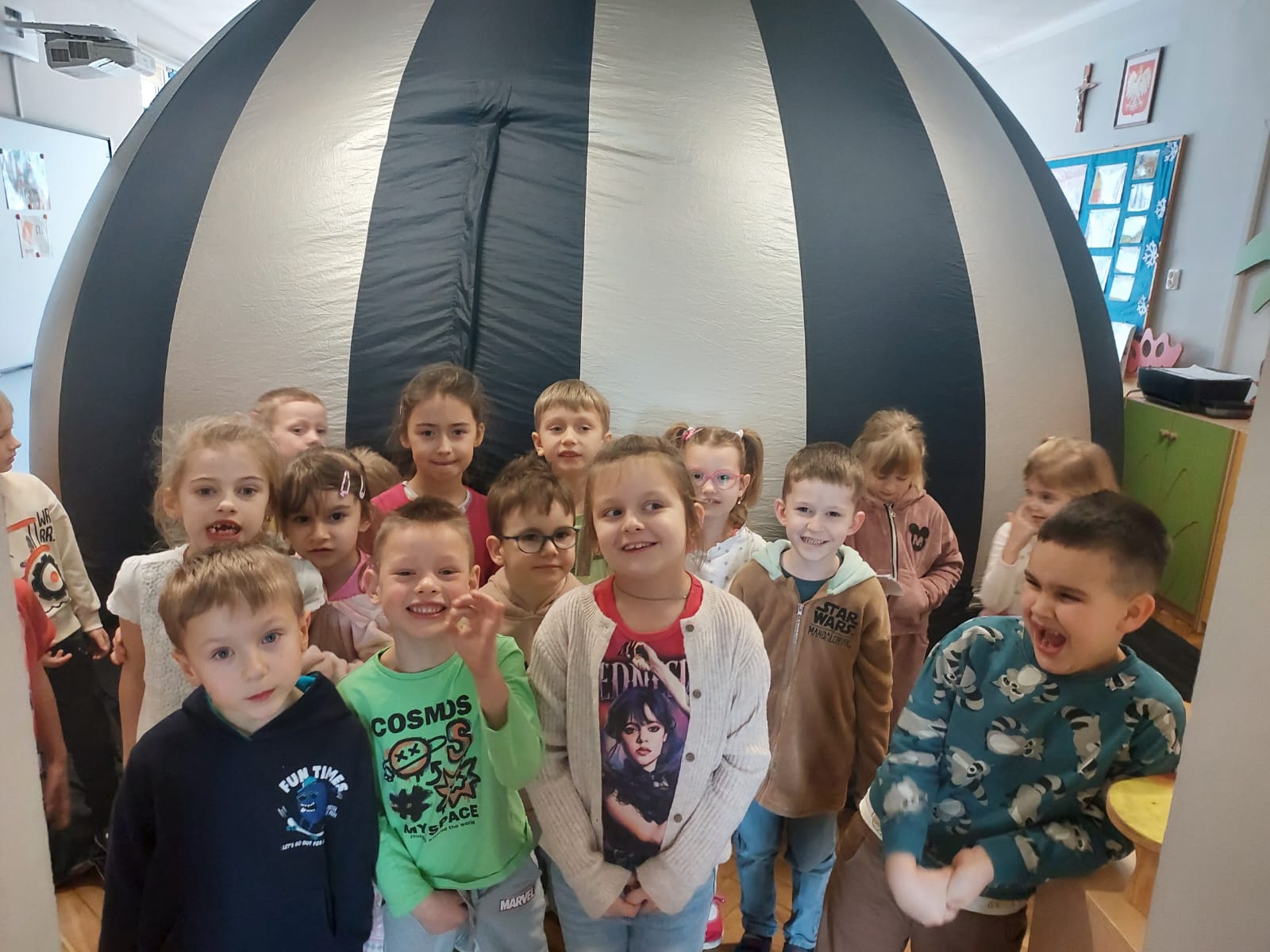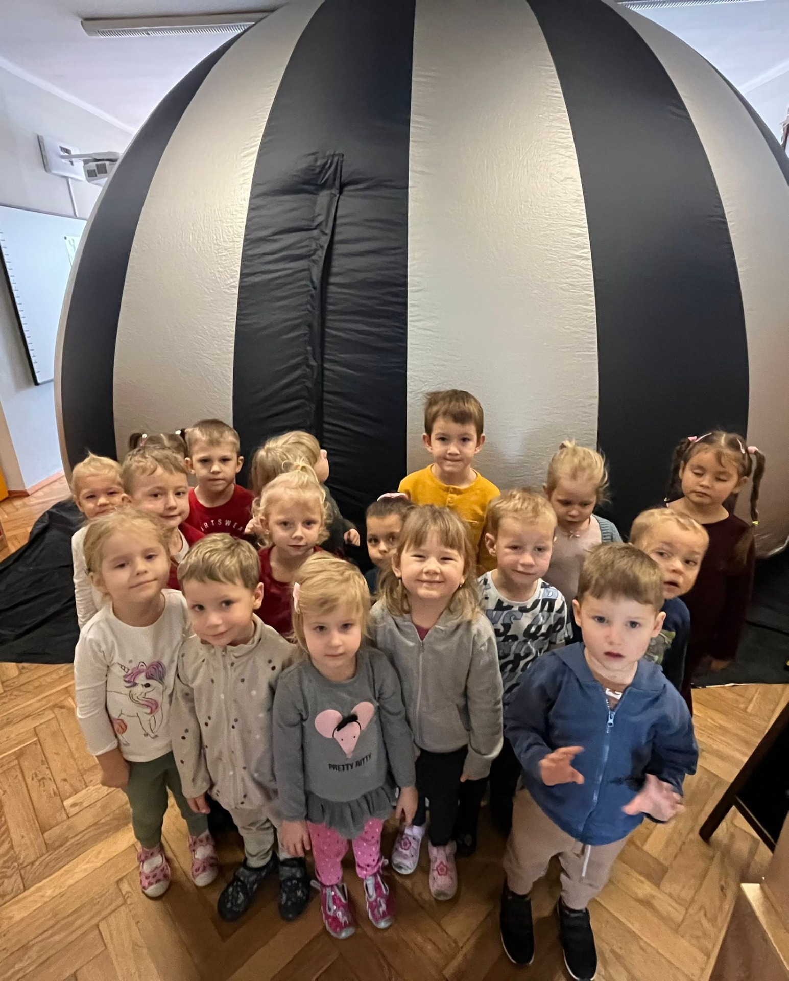 24 lutego w naszym przedszkolu gościło mobilne Kino Sferyczne. Dzieci miały niepowtarzalną okazję obejrzeć film wewnątrz kopuły w technice 3D. Za pomocą systemu sferycznej projekcji w środku kopuły tworzy się niesamowity obraz – sferyczny 360° obszar panoramiczny, którego nie ma żadne inne współczesne kino. Jest to na dzień dzisiejszy najefektywniej działająca wirtualnie uwiarygodniona rzeczywistość.