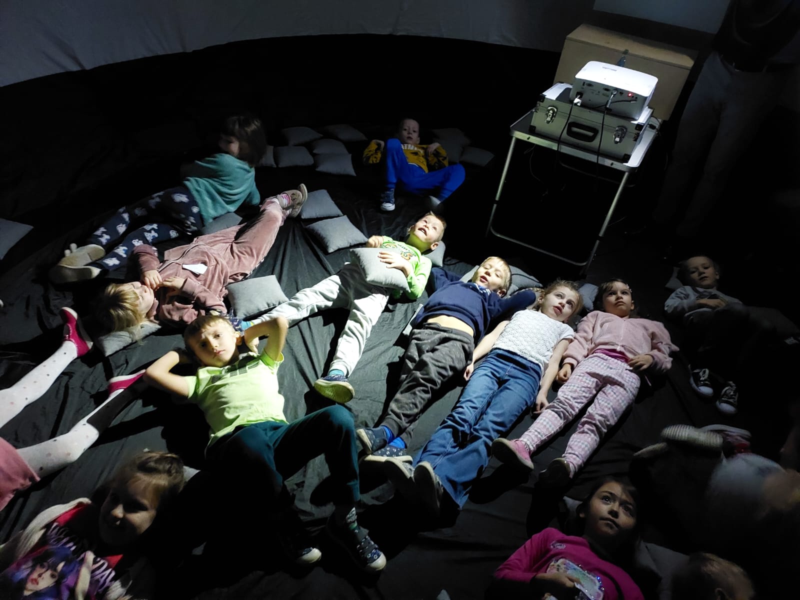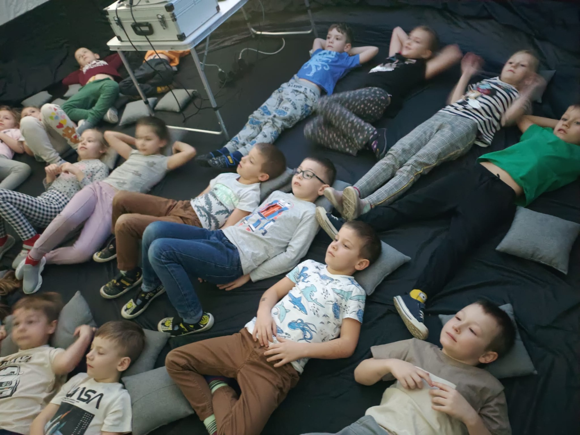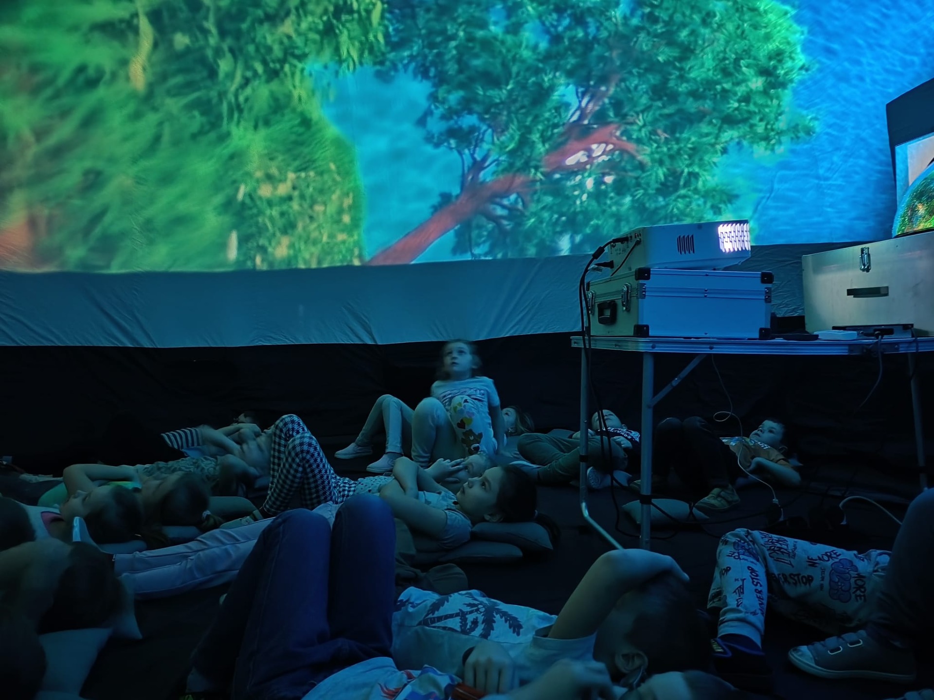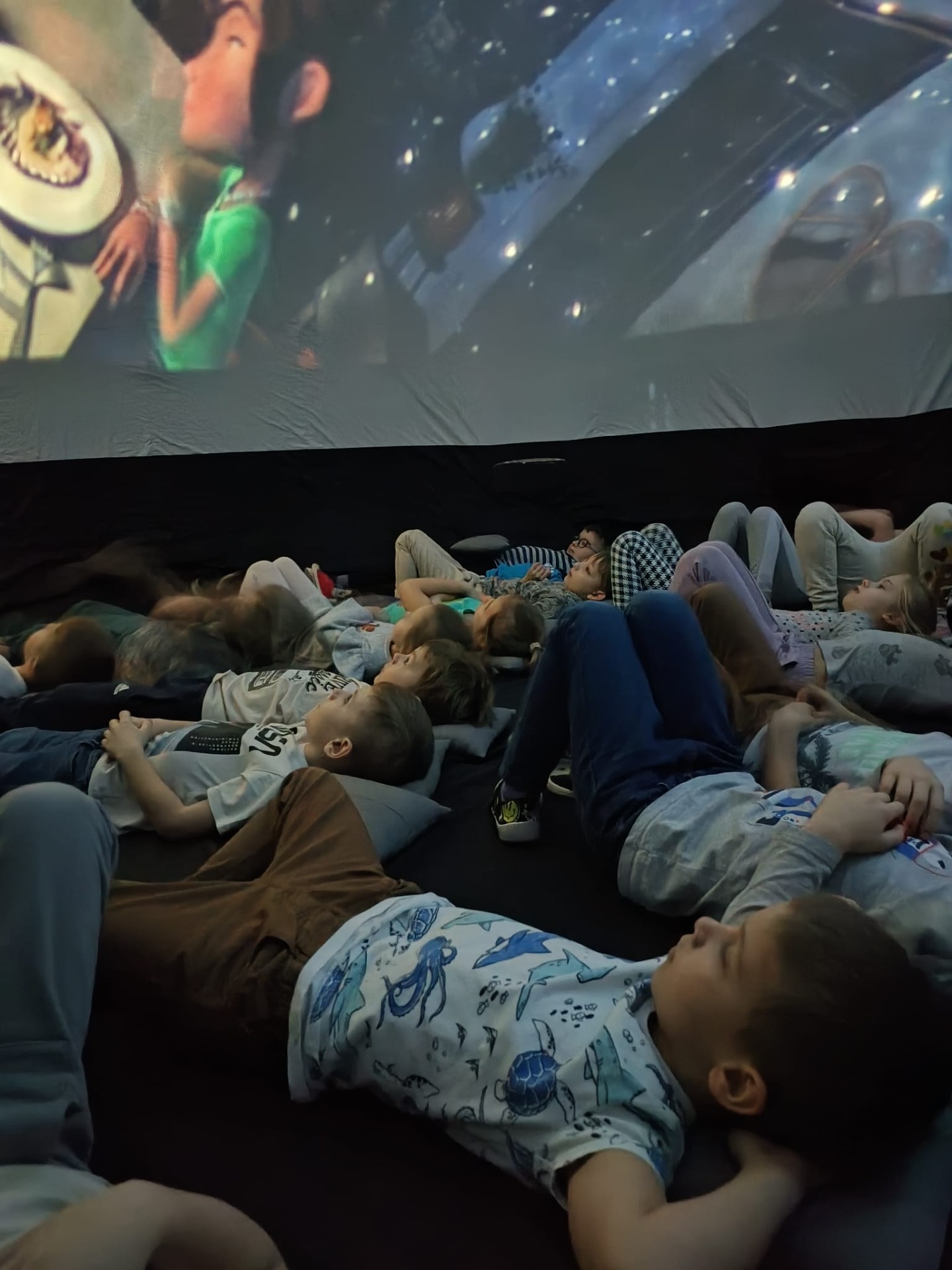 Dzieci, w tym zjawiskowym kinie, obejrzały bajkę „Cztery pory roku" oraz , „Rafa koralowa". Seans był niezwykły również dlatego, że najlepiej ogląda się go w pozycji leżącej!