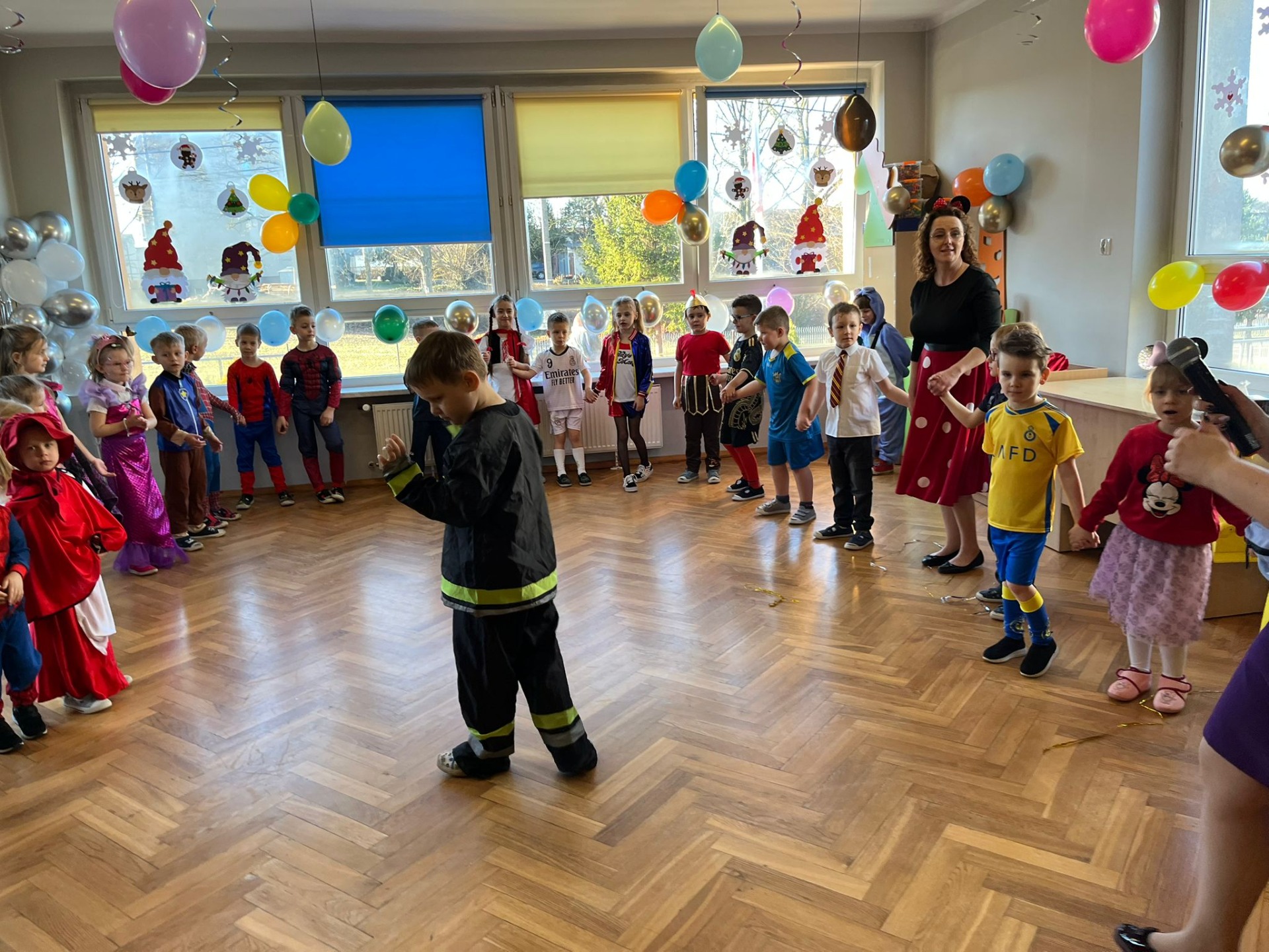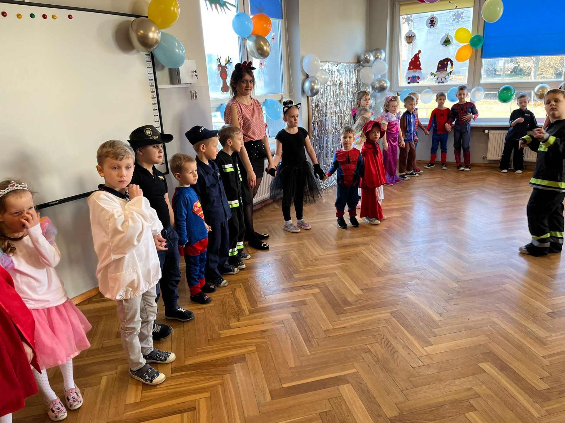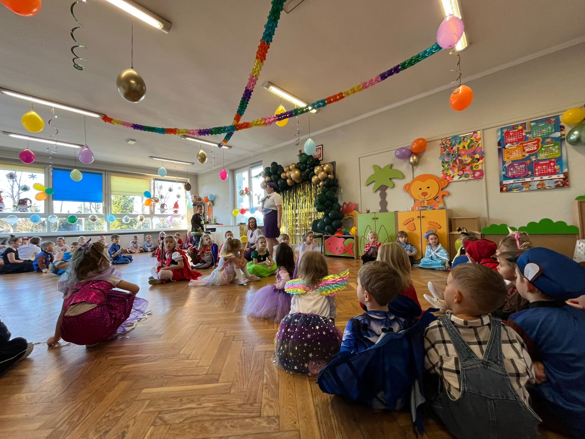 W pierwszej kolejności dzieci miały możliwość pozowania do zdjęcia grupowego oraz zdjęć indywidualnych. Następnie wszyscy udali się do sali balowej, która wprowadziła dzieci w radosny nastrój. Podczas balu karnawałowego prowadzonego przez panie wodzirejki wszystkie dzieci tańczyły w rytm znanych oraz popularnych utworów. Dzisiejsza zabawa umożliwiła dzieciom i wychowawcom spędzenie czasu w miłej atmosferze.