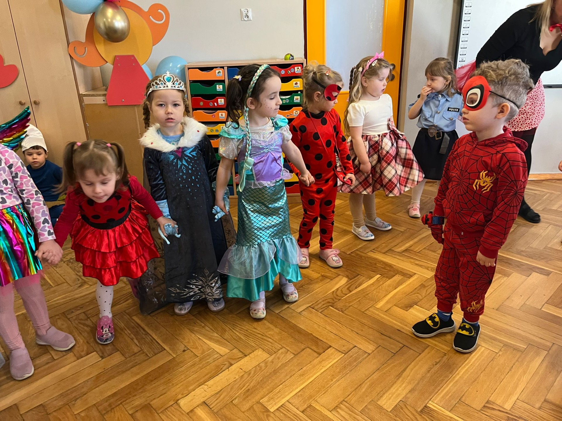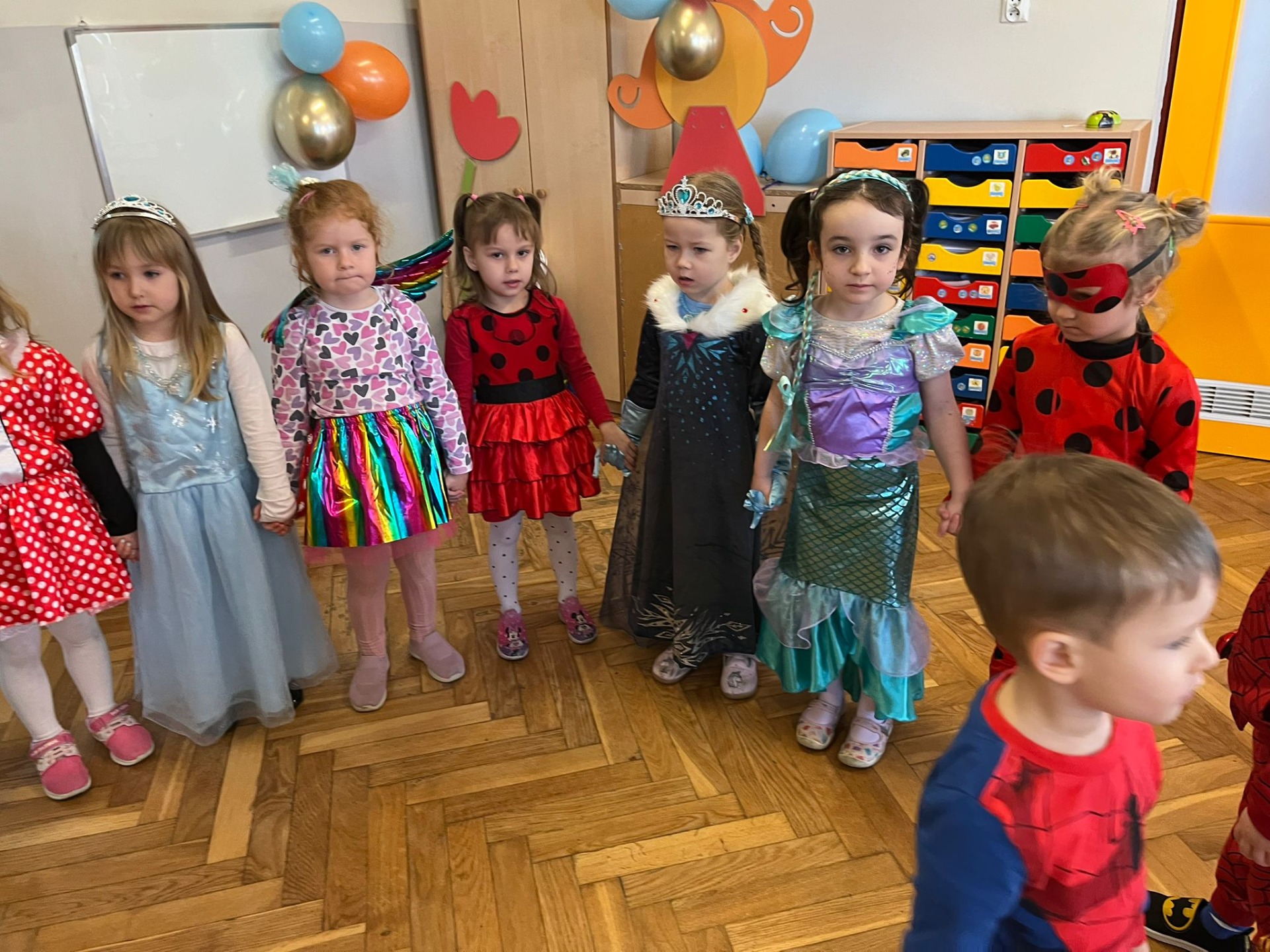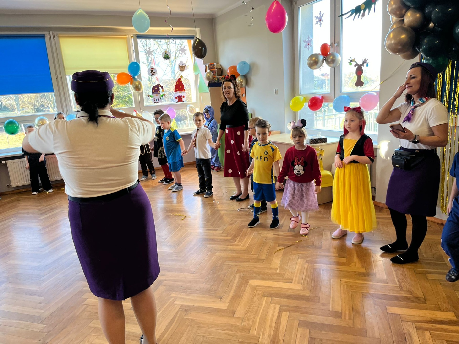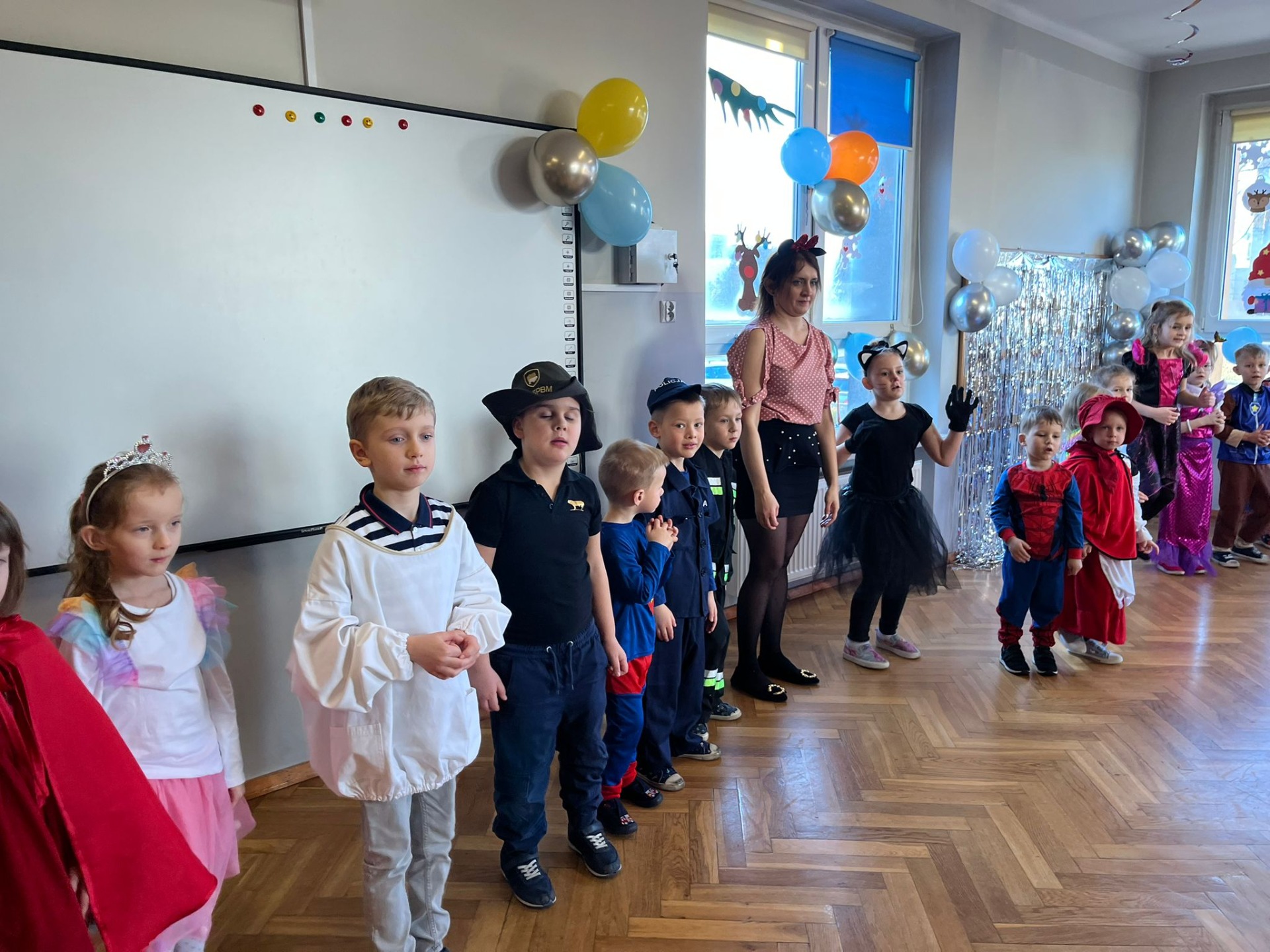 W pierwszej kolejności dzieci miały możliwość pozowania do zdjęcia grupowego oraz zdjęć indywidualnych. Następnie wszyscy udali się do sali balowej, która wprowadziła dzieci w radosny nastrój. Podczas balu karnawałowego prowadzonego przez panie wodzirejki wszystkie dzieci tańczyły w rytm znanych oraz popularnych utworów. Dzisiejsza zabawa umożliwiła dzieciom i wychowawcom spędzenie czasu w miłej atmosferze.