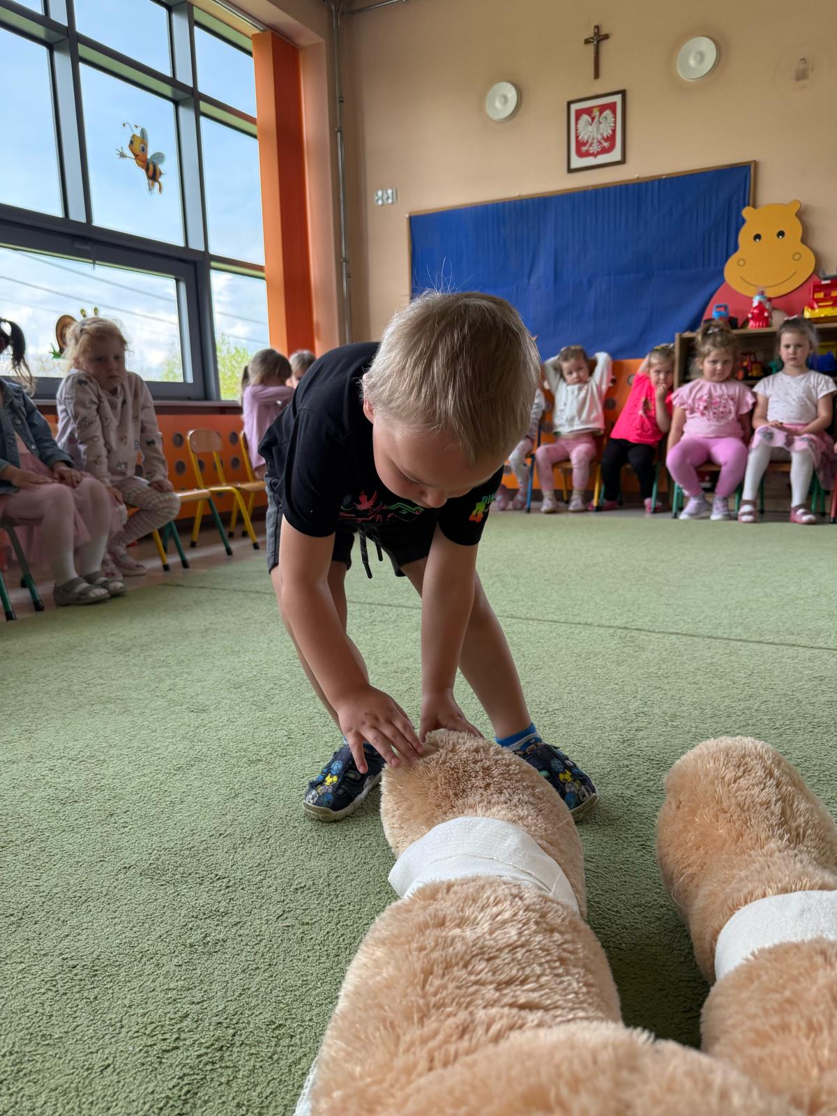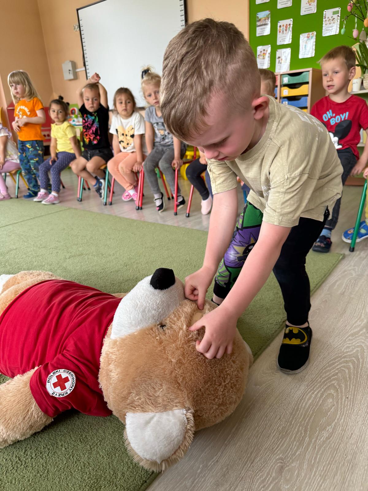 W dniu 24 kwietnia dzieci z grupy I i II uczestniczyły w zajęciach "Pierwszej pomocy" przeprowadzonych przez przedstawiciela "PCK" w Bytomiu.