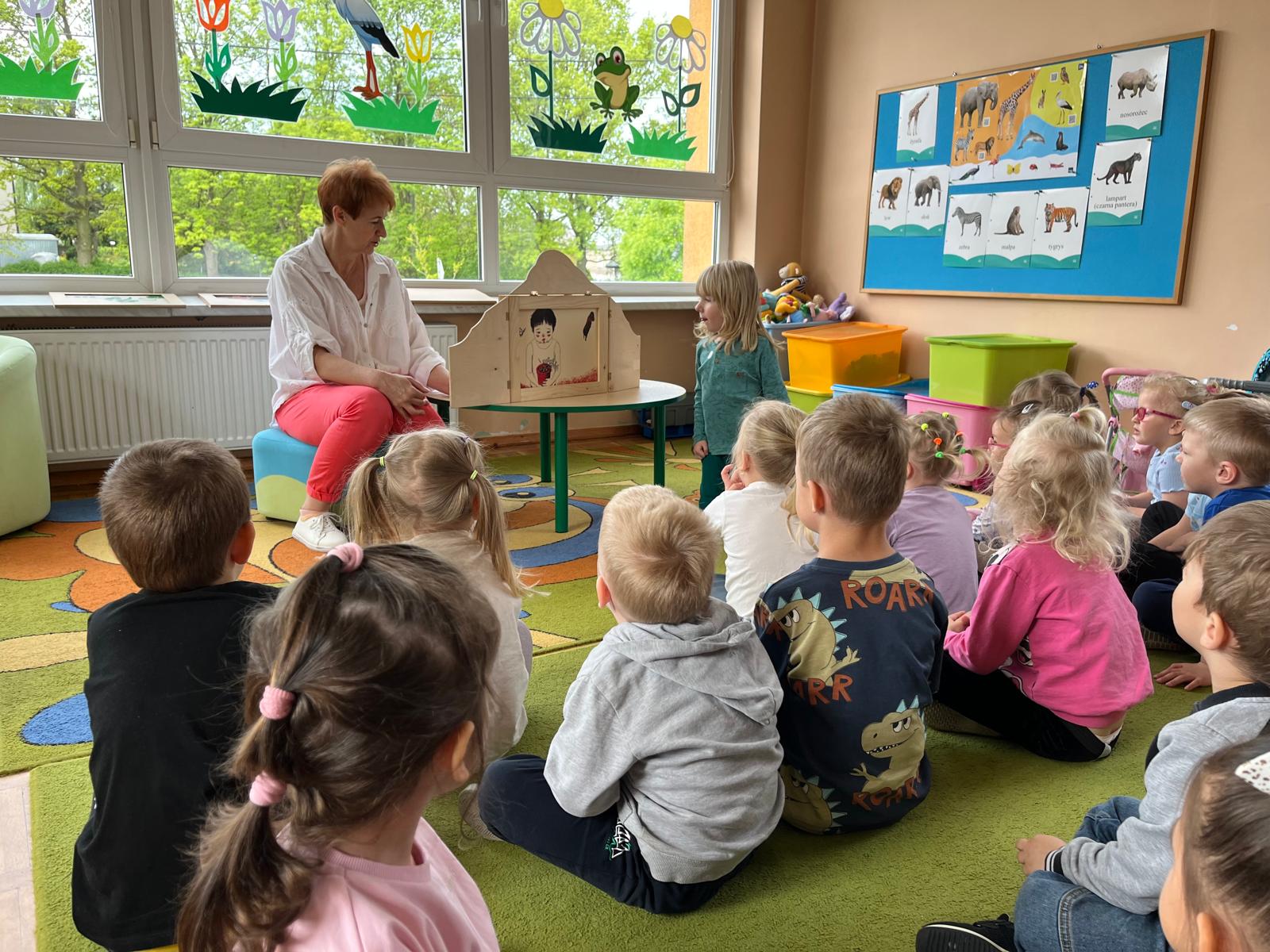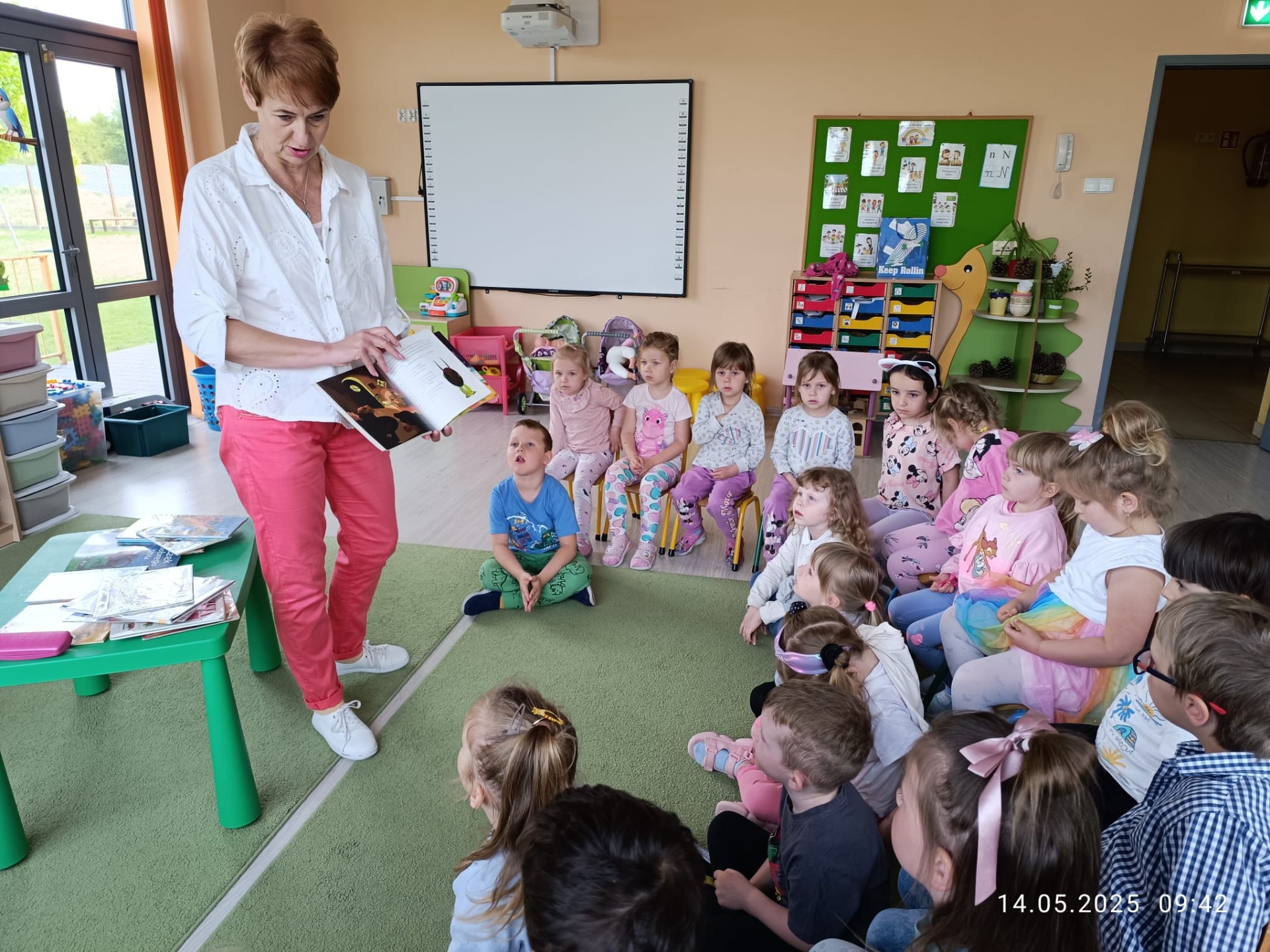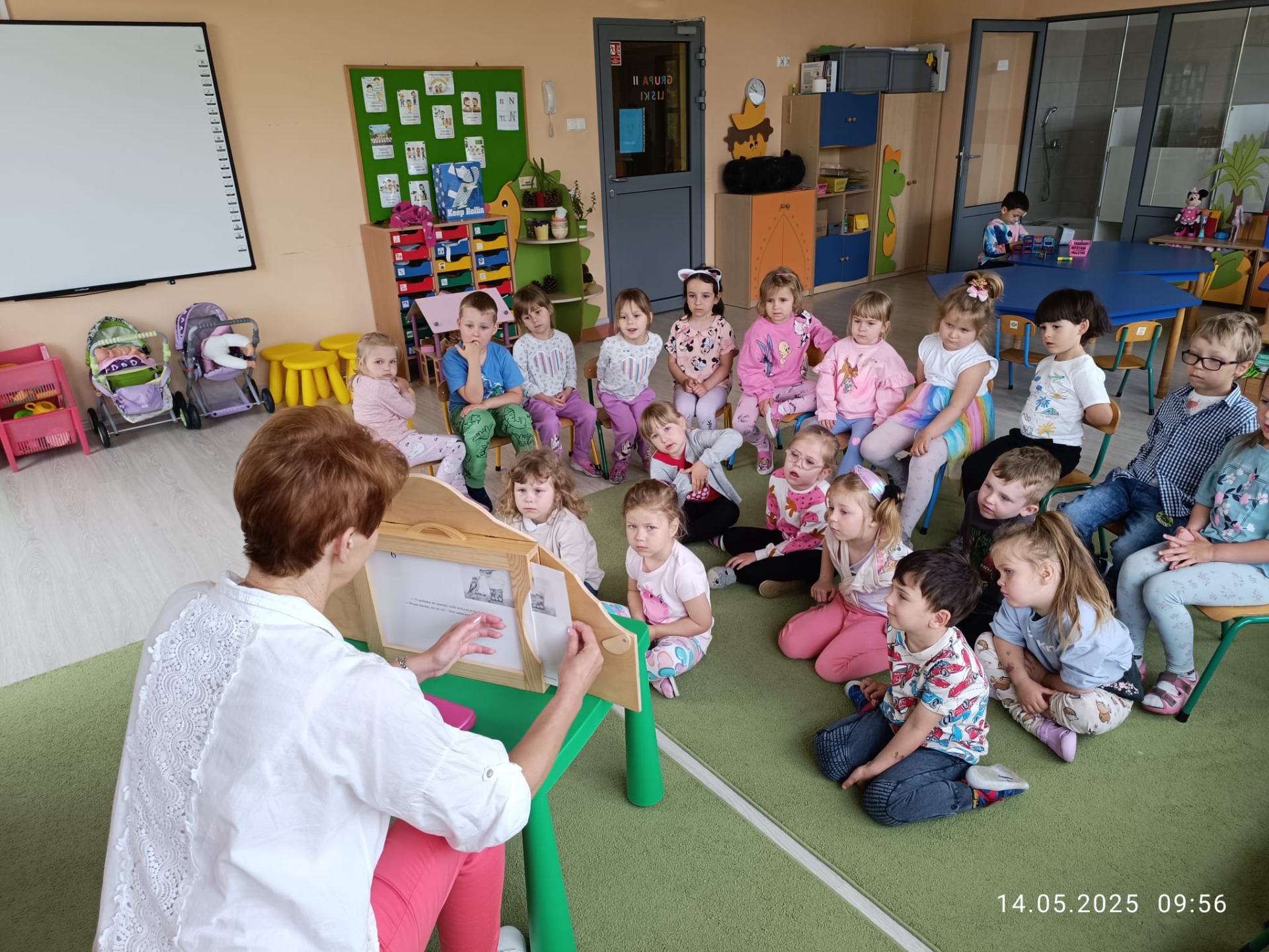 W ramach XXII Ogólnopolskiego Tygodnia Bibliotek w 2025r. pod hasłem "BIBLIOTEKA. LUBIĘ TU BYĆ!" najmłodsze grupy odwiedziła dziś Pani bibliotekarka Iwona Grotecka - Dyrektor Miejsko Gminnej Biblioteki Publicznej w Woźnikach.