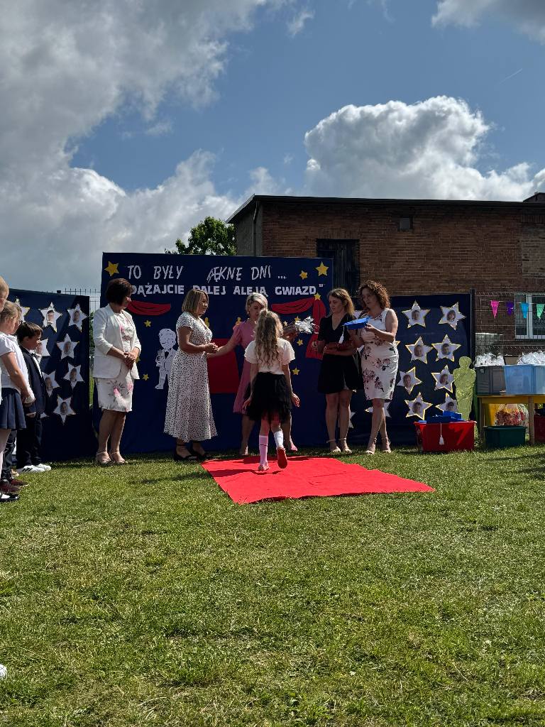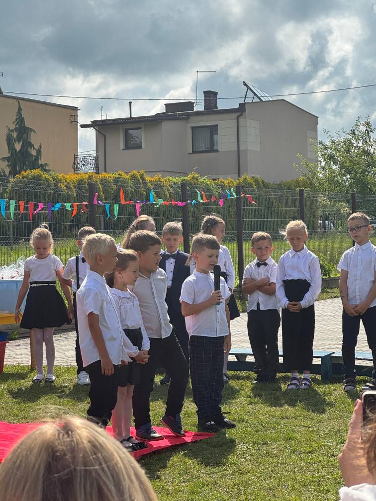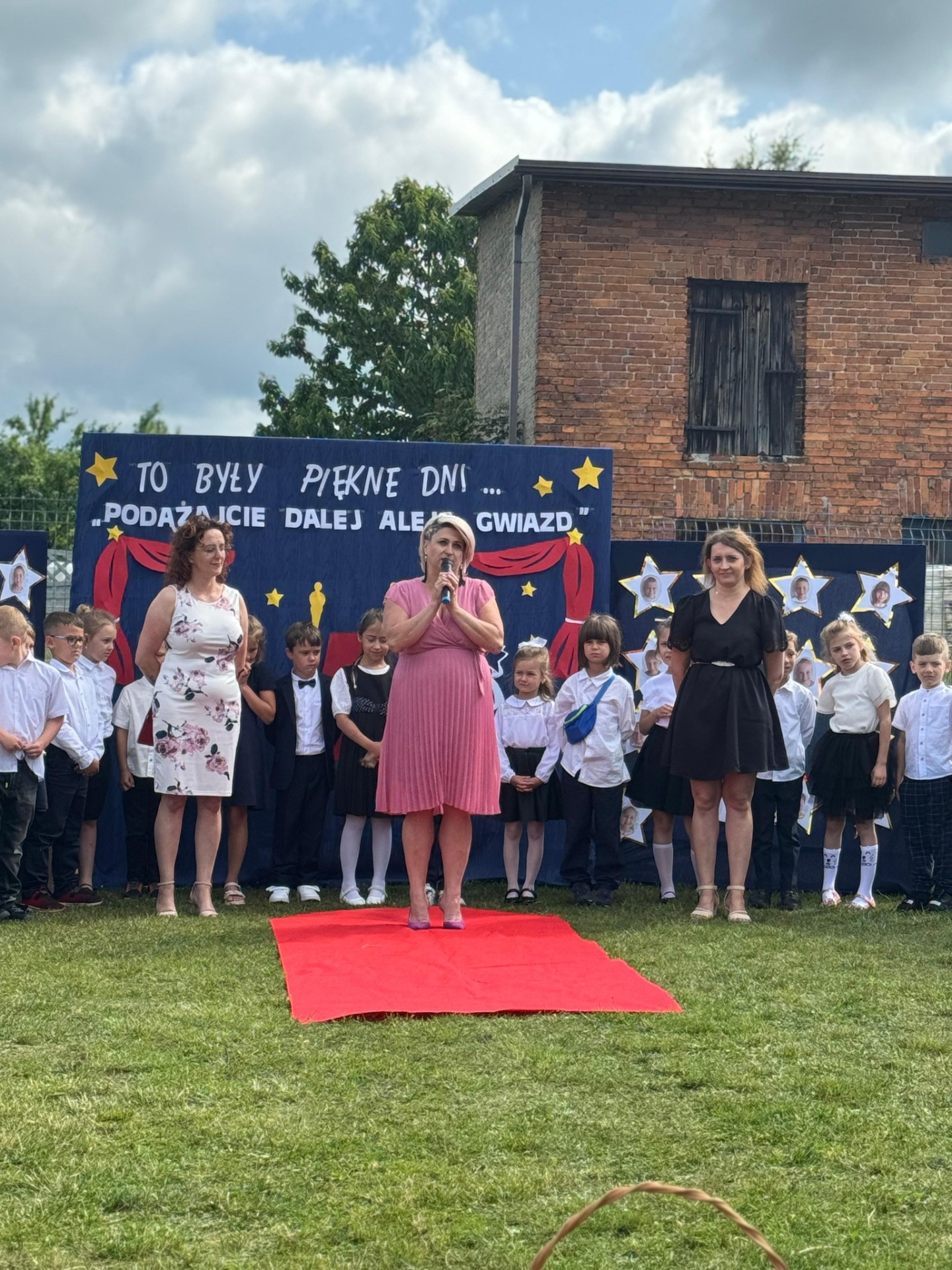W uroczystości udział wzięli również zaproszeni goście – Pani Beata Bacior, Zastępca Burmistrza, oraz Pani Zofia Cichowska, Dyrektor ZEASZ, którym serdecznie dziękujemy za obecność i ciepłe słowa skierowane do dzieci, rodziców i całej naszej społeczności.