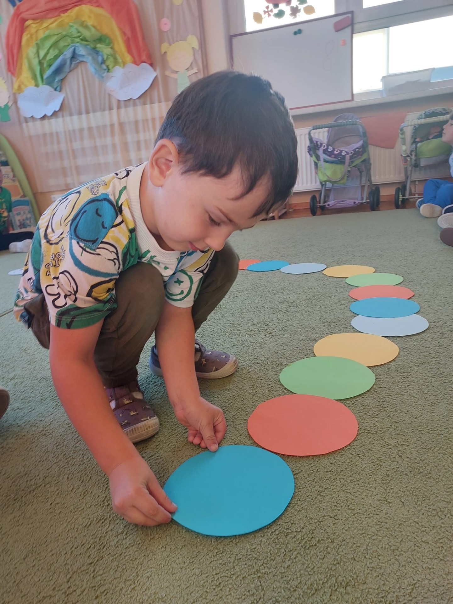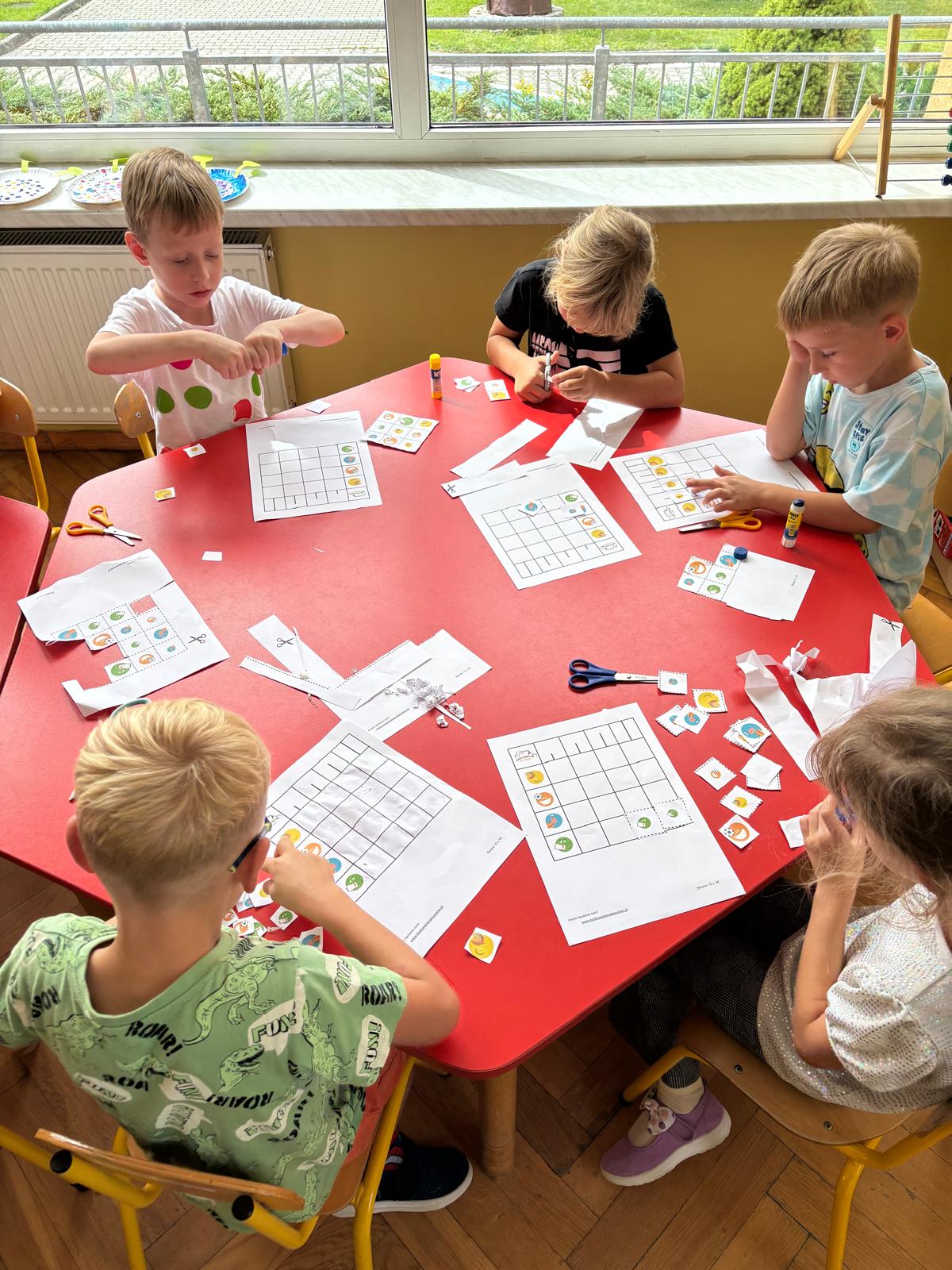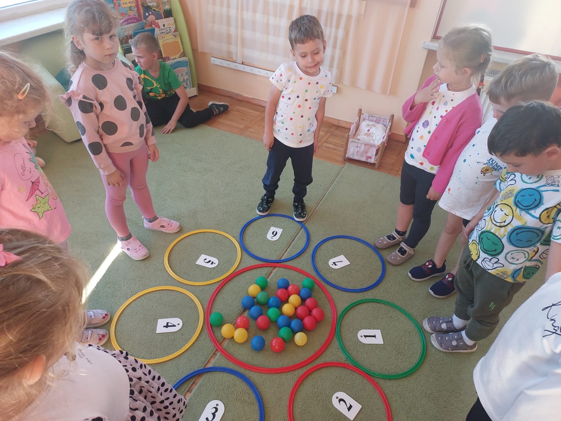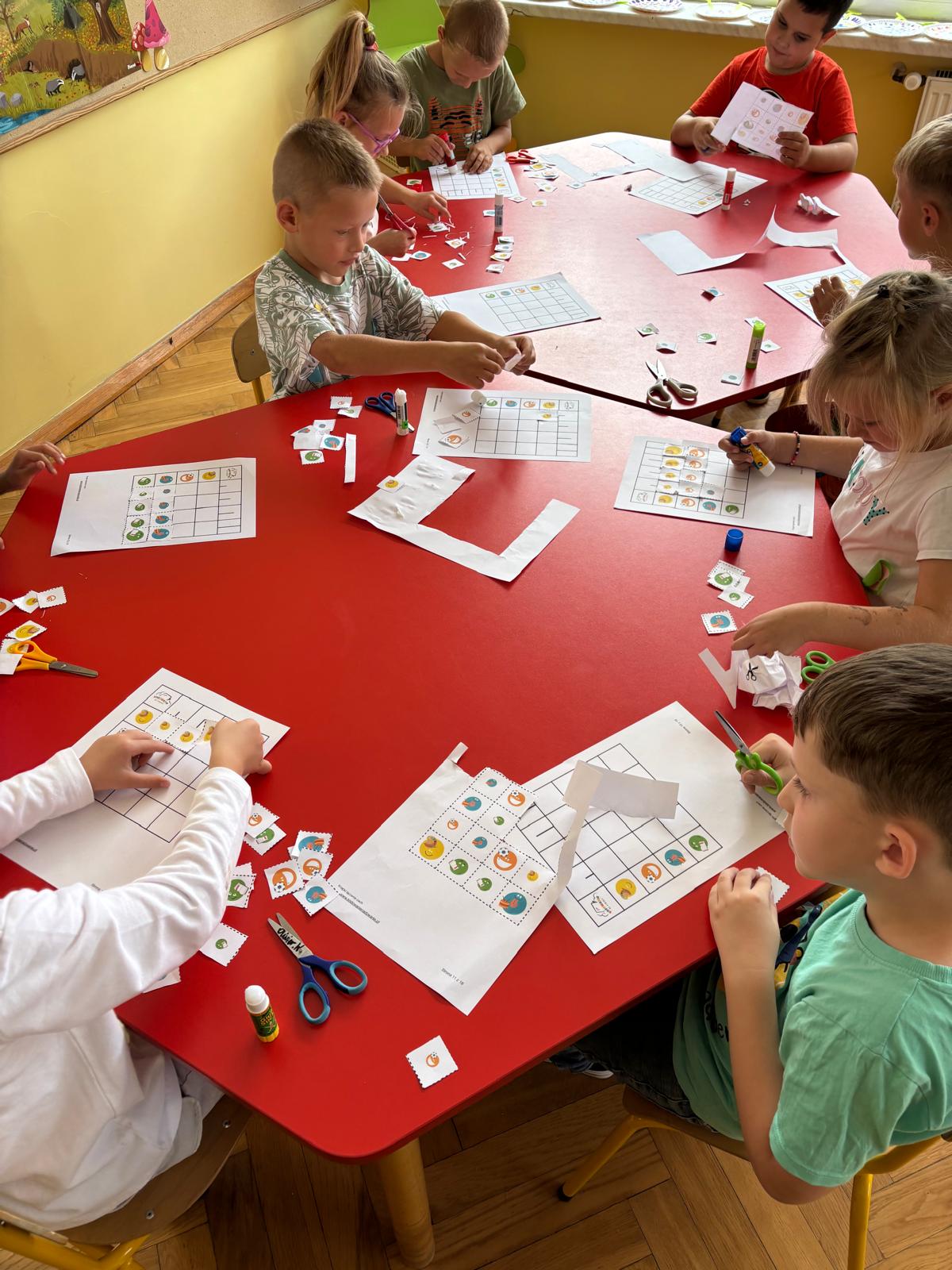 Dzieci tego dnia przystroiły się w kolorowe kropki oraz chętnie uczestniczyły w zabawach i zadaniach, oczywiście z kropką w roli głównej. Wspólnie odkryliśmy, że kropki towarzyszą nam dookoła w naszym codziennym życiu, nawet na naszym ciele i u zwierząt. Dzieci wymyślały co może powstać z kropki, tworzyły ciekawe prace plastyczne. Wspólnie liczyliśmy, segregowaliśmy kolorowe kropki i bawiliśmy się z kropkami przy muzyce.